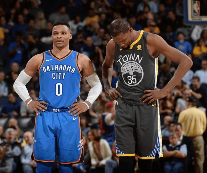 最后,再来说说这对组合究竟多么恐怖,在三少组合解体后,三人分别都成为了常规赛MVP,并且总计拿到了9次得分王头衔,威少更是成为了历史三双王,哈登则是连续多个赛季场均得分超过30+,打出了比肩甚至超越了05-06赛季科比·布莱恩特的表现,而杜兰特则4次夺得得分王,常年都是最佳第一阵容的成员之一。