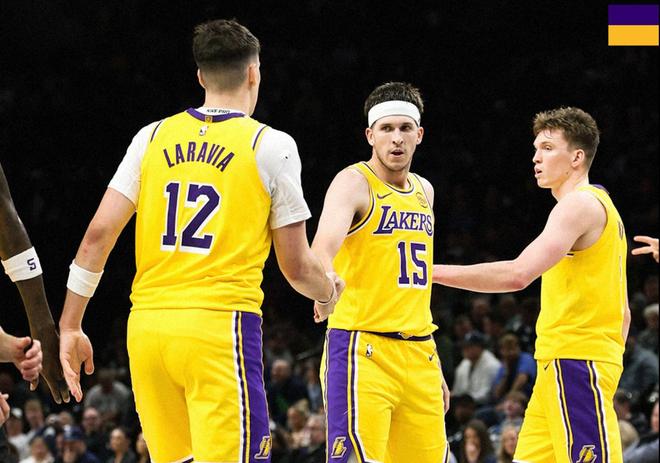 本场比赛,双方绝对核心都因伤缺席,东契奇詹姆斯不打,爱德华兹也因伤缺阵。本场比赛,双方在首发阵容上面,湖人这边派出的是,里夫斯,八村塁,艾顿,范德比尔特和拉拉维亚,森林狼这边派出的是,兰德尔,麦克丹尼尔斯,迪文琴佐,戈贝尔和康利。首节比赛开始,艾顿跳球获胜,湖人率先拿到球权,拉拉维亚的超远三分打进本场比赛首个进球,麦丹的中距离干拔也为森林狼开张,艾顿顺势抛投稳稳得手,兰德尔侧翼三分开火正入网心,八村塁的自信三分干拔一击命中,兰德尔底角埋伏,三分果断发炮张手就有。
